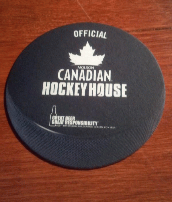 First, a disclaimer: I never drink the two beers listed on these beer taps, ever, however, I love the beer taps topped with Stanley Cups. A number of pubs and bars actually used these taps during hockey season and I wish I had been able to see one in person. Here in the southern US where football is king I was extraordinarily lucky to see a Molson Canadian Hockey House coaster! (See below.)