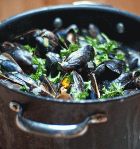 - Mussels with Pied-de-Vent cheese and Blonde de Chambly